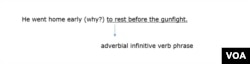 Infinitive verb phrases often answer a why question. Martha Kolln and Robert Funk, two English grammar experts, say an easy way to recognize adverbial infinitive verb phrases is to add the phrase in order to to the sentence.
