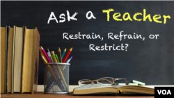 Hello! This week on Ask a Teacher, we will answer a question about three verbs, “restrain,” “refrain,” and “restrict.”